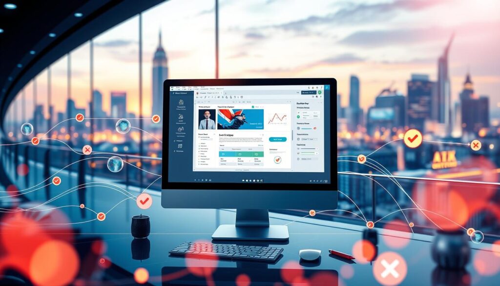 For small business content optimization, the right ai content tools are key. Tools like Grammarly and Hemingway Editor help improve content quality and clarity4. They make complex content easier to read and offer scores for text readability4.