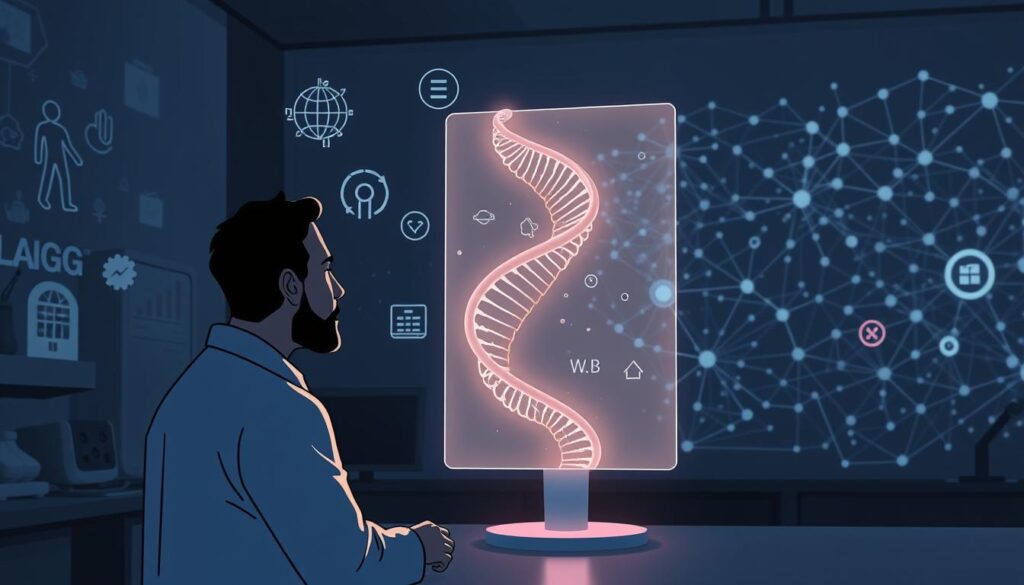This tech is changing how we look at DNA. It turns DNA data into health forecasts. By looking at tiny DNA changes, algorithms find signs of diseases like Alzheimer’s and diabetes years before symptoms show.