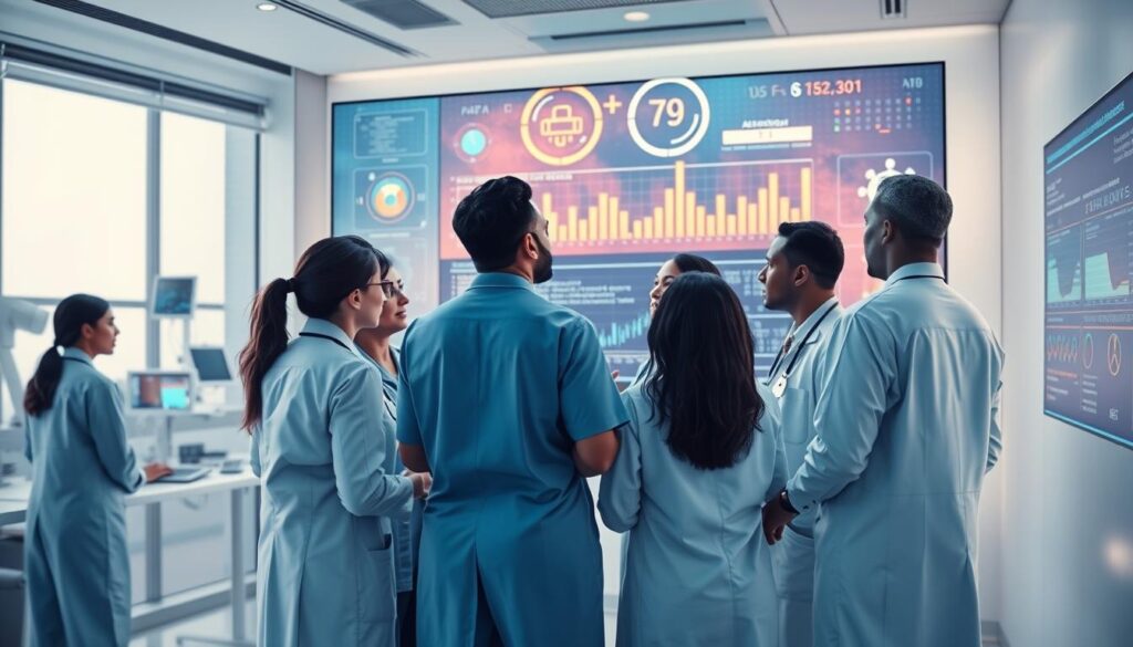 AI can help doctors by freeing up time for more patient care. It could save about 30% of their time6. But, over 70% of people worry about AI bias in healthcare7. Creating ethical AI guidelines could boost patient trust by over 90%6.
