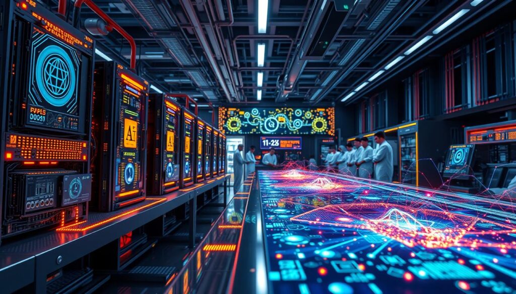 Getting quantum supremacy in ai is key. It means quantum computers can simulate molecular interactions faster than classical ones. This could help in drug discovery and materials science5. Despite hurdles, the quantum computing market is growing fast, showing more people are interested5. To move forward, we need to work together to make quantum computing better and more scalable7.