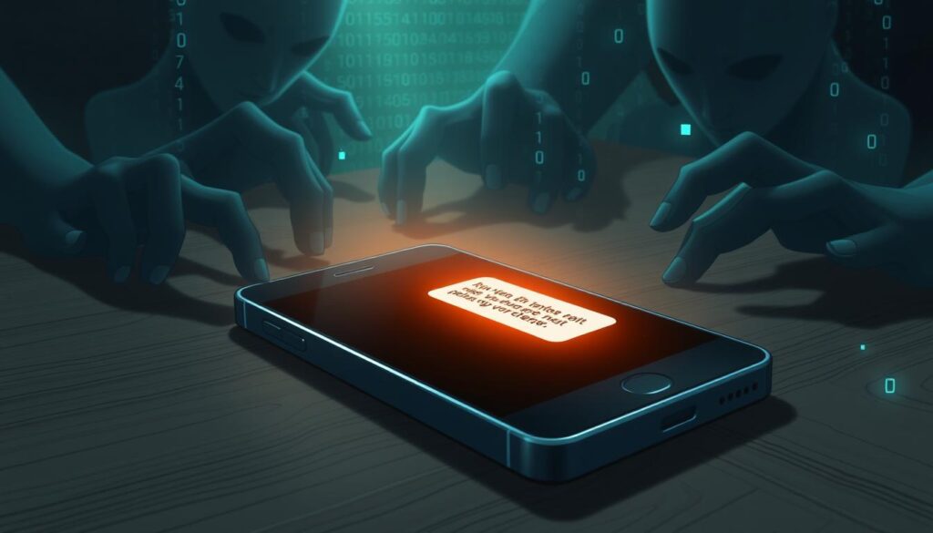 Technology keeps getting better, and so do common phishing tactics. Now, they target mobile devices too. It’s key to know about phishing emails and social engineering on phones. In 2023, 75% of companies faced smishing attacks14. This shows we need to be more careful and protect ourselves better.