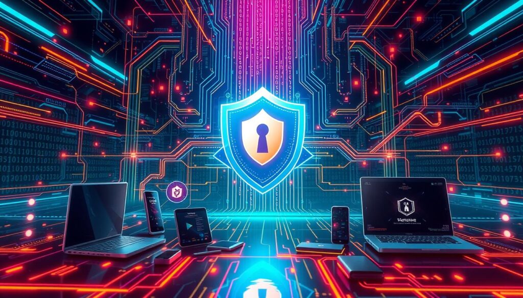 By following these steps, you can shield your devices from malware. This helps lower the chance of cyber attacks, keeping your internet safety and security strong9. It’s also smart to stay updated on new cyber threats and trends. For example, mobile device malware attacks have jumped by over 50% in the last three years9.