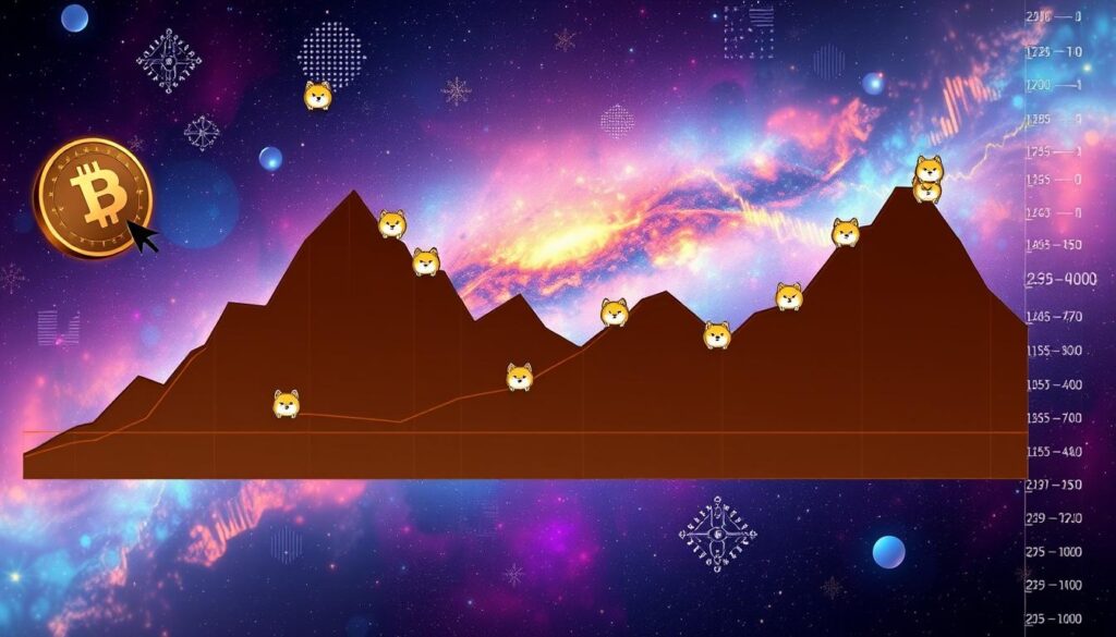 The table shows Bitcoin and Dogecoin’s different performances. Bitcoin has seen a 110% annual return and 81% volatility21. Dogecoin’s price has been more unpredictable, influenced by social media and celebrity support20.