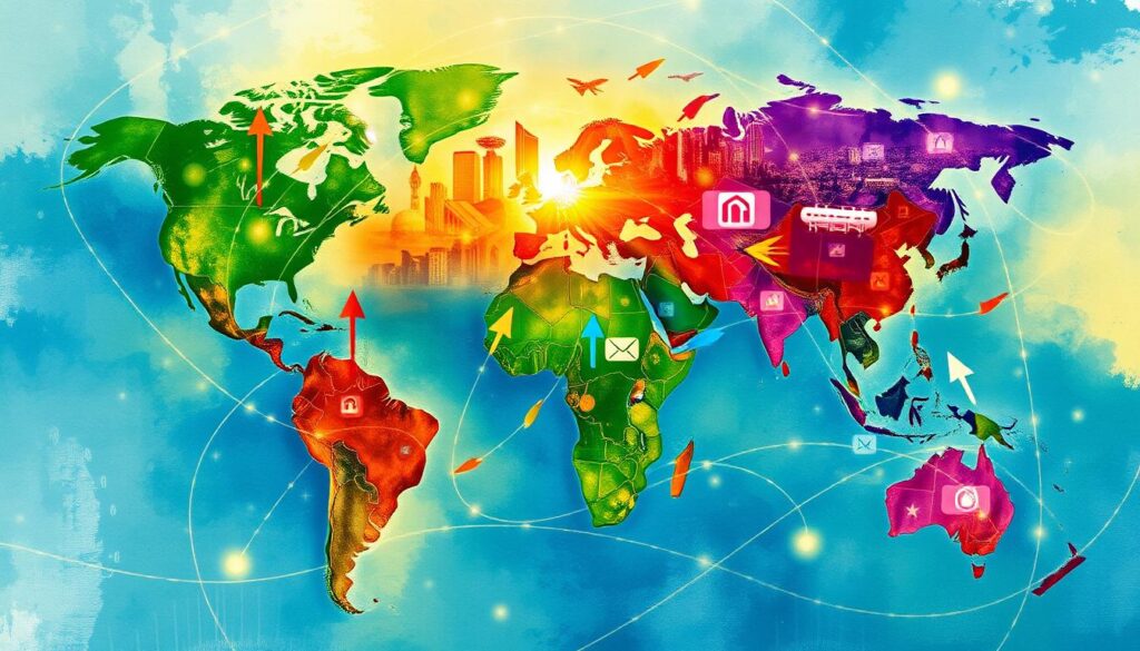 Recent studies show that 47% of business owners want to grow globally online6. This helps them avoid problems in their own area and find new chances6. Growing globally also creates jobs and brings in new ideas6.
