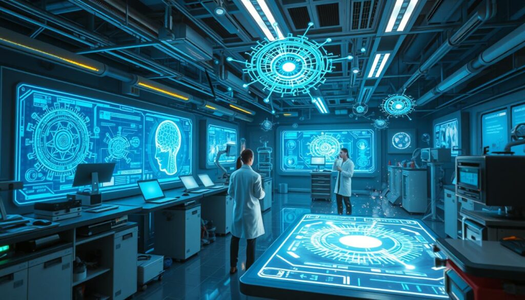 Researchers are working hard to make General AI as smart as humans12. A 2020 survey found 72 AGI projects in 37 countries12. This shows a big interest in AGI for tech, health, and education.