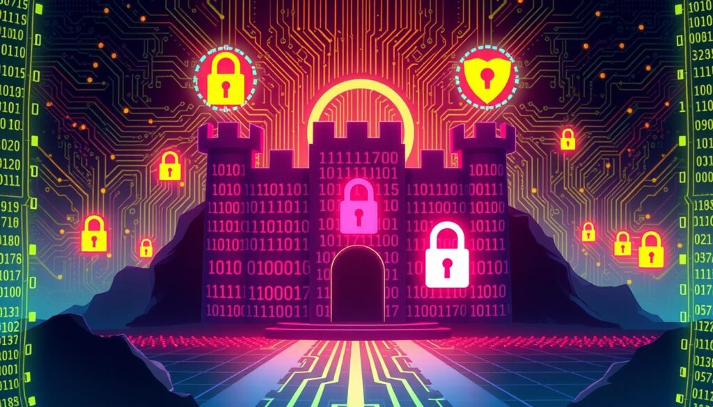 Intrusion detection systems and security information and event management systems add extra protection. These measures can greatly lower the chance of falling to cyber threats. For instance, Endpoint Detection and Response (EDR) tools can cut down ransomware detection time by 50%9. Regular backups can also boost data recovery success by 70%9.