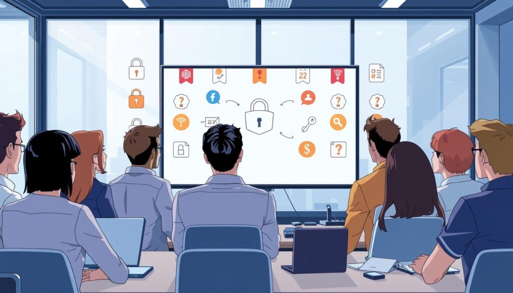 Security awareness training is key to any company’s cybersecurity plan. It teaches employees about risks and how to avoid them17. Monitoring employees can also help catch and stop insider threats. But, it’s important to do this in a way that respects privacy and civil rights18.