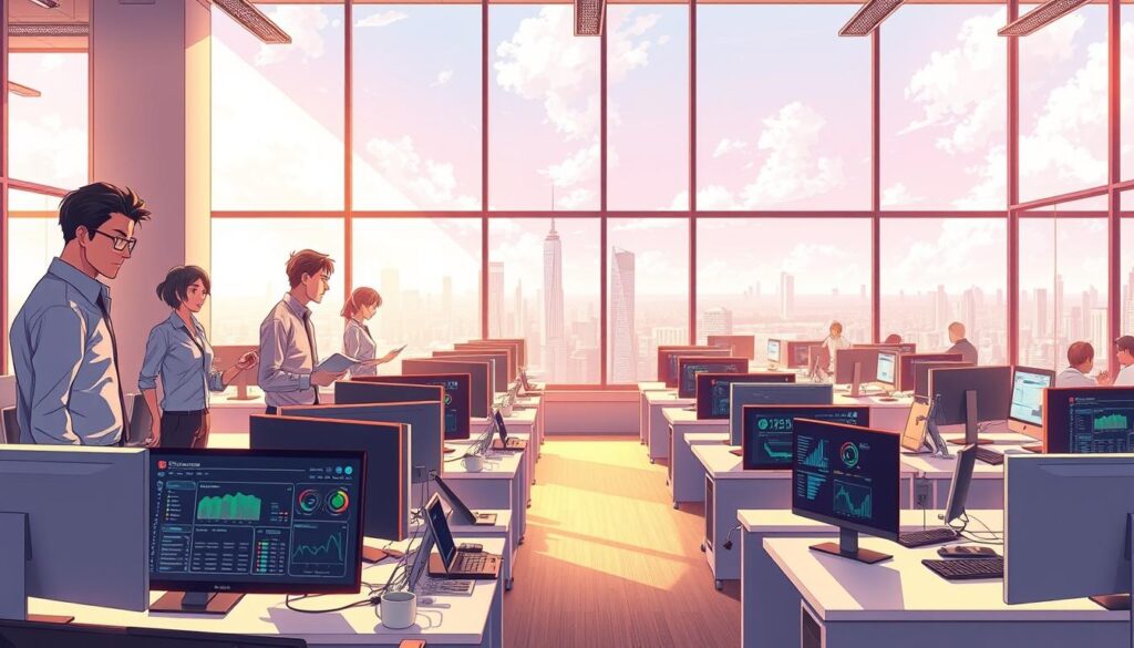 Companies like Google, Amazon, and Microsoft use AI well. They automate tasks and make customers happier. This is done through AI business and Artificial Intelligence Business solutions.