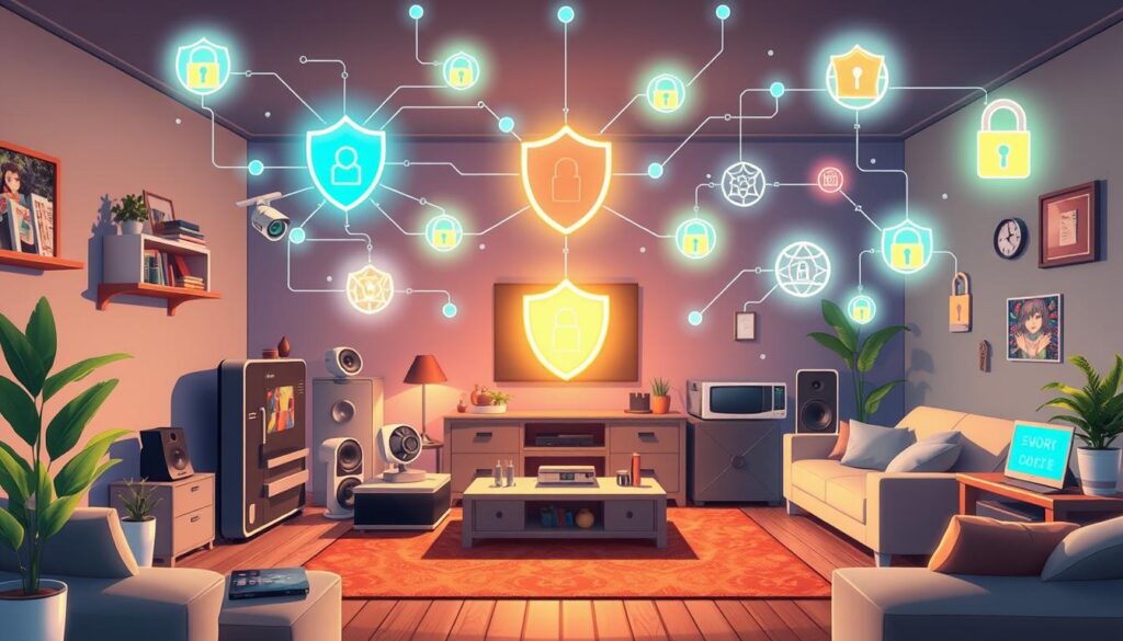 Smart devices face threats like malware, unauthorized access, and data breaches. Studies show that 75% of organizations see IoT devices as a data breach risk3. To fight these risks, using strong passwords and keeping software updated are effective. These actions can cut down risks significantly3.