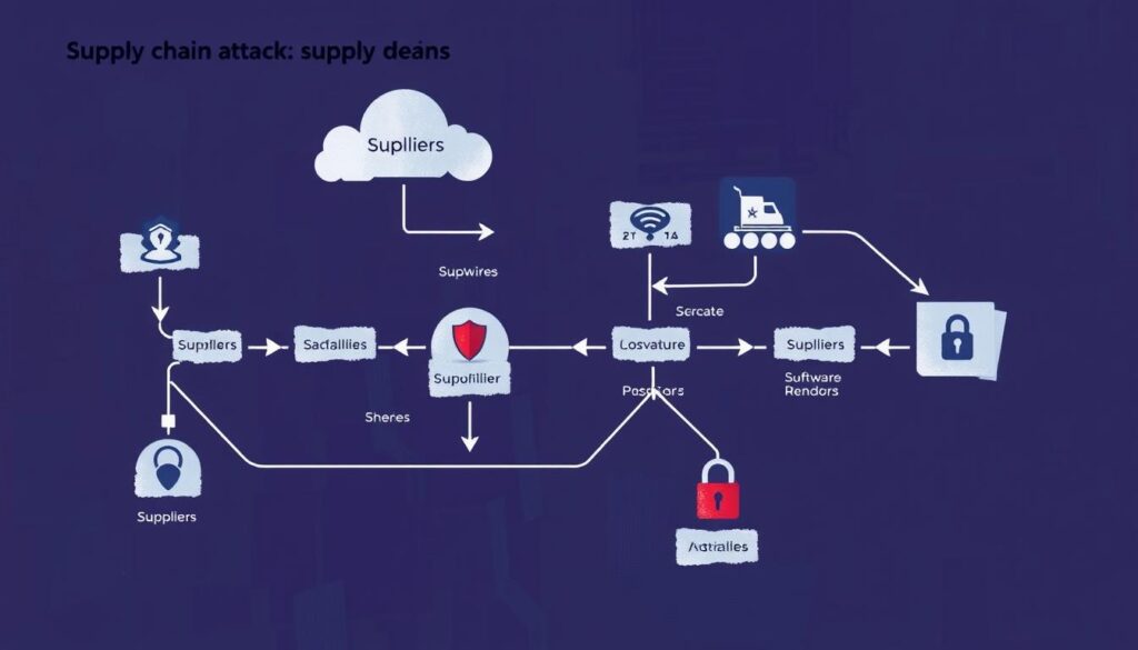Supply chain attacks are a big risk for companies. They target weak spots in the delivery network. These attacks can harm critical U.S. infrastructures and cause big data breaches8. Knowing these risks is key for keeping businesses safe and following the rules for supply chain security.