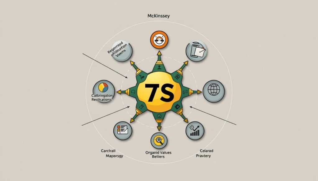 The McKinsey 7S Framework helps organizations see their operations clearly. It looks at seven key areas: Strategy, Structure, Systems, Shared Values, Skills, Style, and Staff. This way, companies can build a strong base for lasting success.