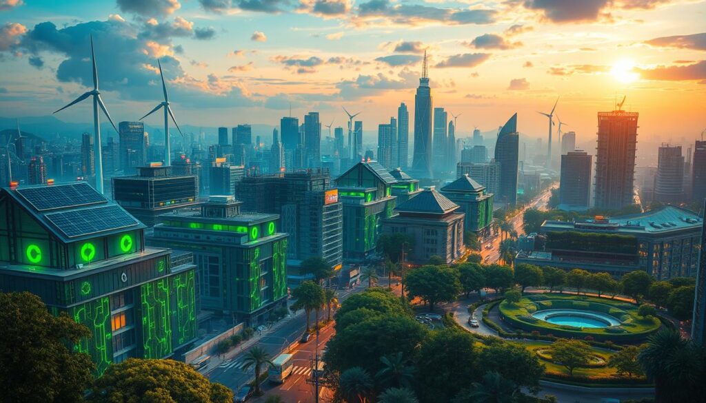 As we aim for sustainable development, energy-efficient AI is key. It helps lower the environmental impact of AI systems. Nearly 76% of people see AI as vital for their sustainability journey7.