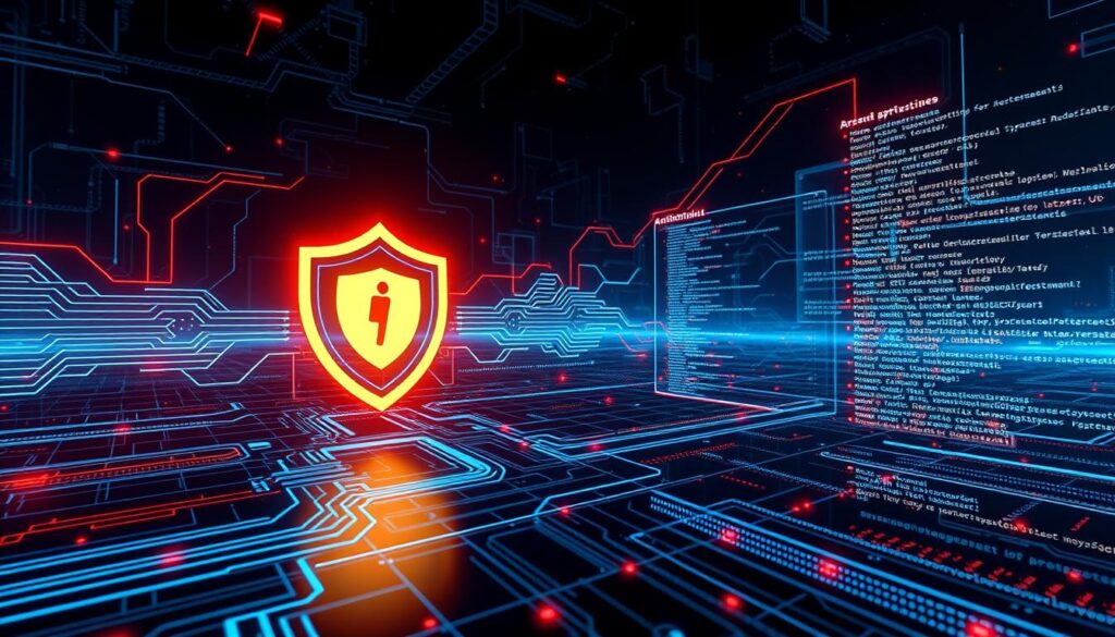 Antivirus software is key to protecting digital systems from cyber threats. In 2022, over 316,000 malware threats emerged daily. This shows the need for strong malware protection8. Let’s look at the main parts that make antivirus solutions good at finding and stopping threats.
